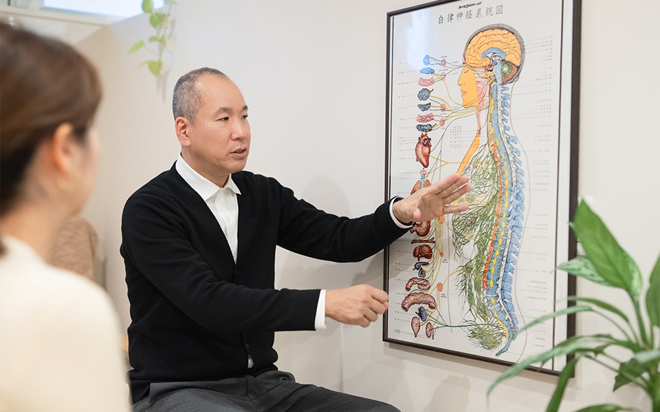 どのような身体になると自律神経が乱れるかに関して、理論に基づいた知識を学び続けているので、整体の視点から原因を見つけていきます。